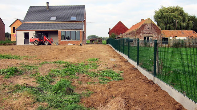 Un temps idéal car sur le côté gauche de la maison, nous installons une palissade en bois. Cette bande de terrain est un bel espace puisqu'il reste 5,30 mètres de jardin bien orientés. La palissade permettra d'éviter les vues depuis la rue.